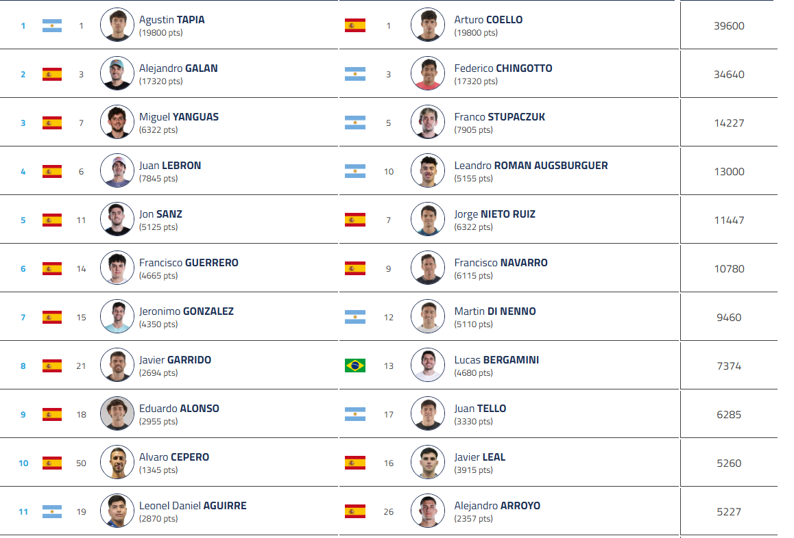 In cima alla fattura, troveremo ovviamente il numero 1 del mondo Agustín Tapia / Arturo Coello, ancora molto avanti in classifica e punto di riferimento assoluto del circuito. Subito dietro, Alejandro Galán / Federico Chingotto continuare il loro slancio dopo un inizio di stagione solido, mentre Miguel Yanguas / Franco Stupaczuk sarà testa di serie 3.
