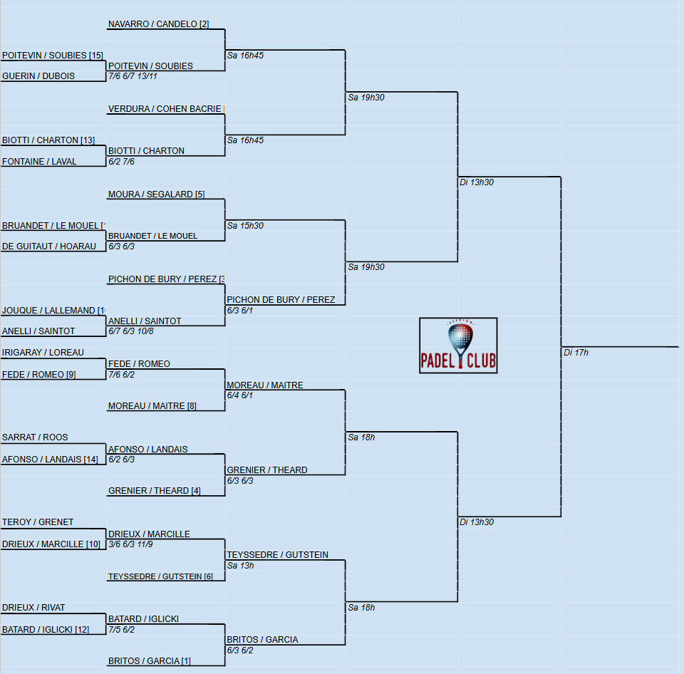 I detentori del titolo Garcia Bassas / Britos avanzare ai quarti di finale, proprio come la squadra di casa Pichon de Bury / Pérez.