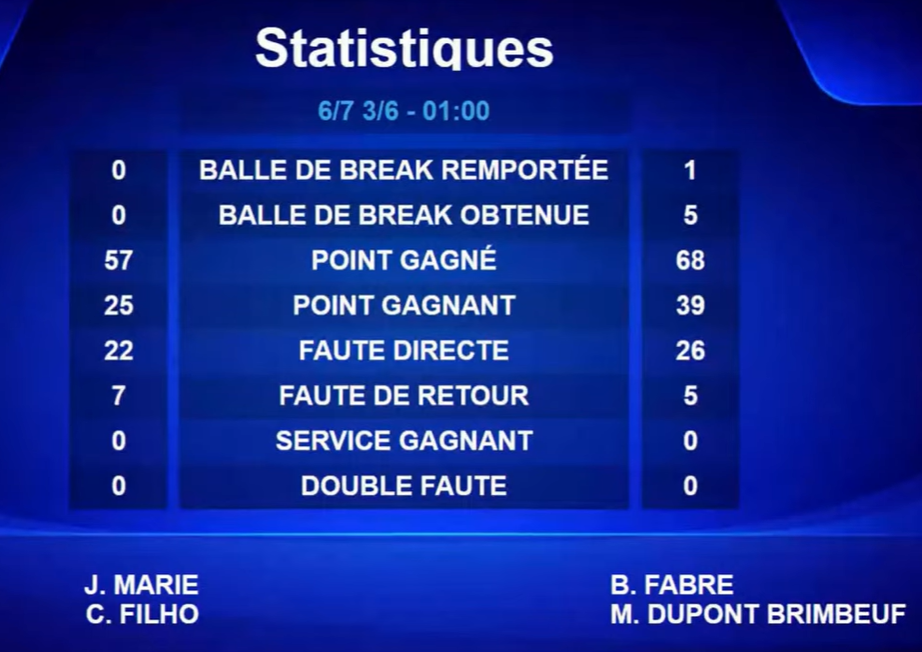 Essendo stata sconfitta la settimana precedente,  Fabre e Dupont-Brimbeuf  ha risposto nel miglior modo possibile vincendo  7 / 6 6 / 3 .